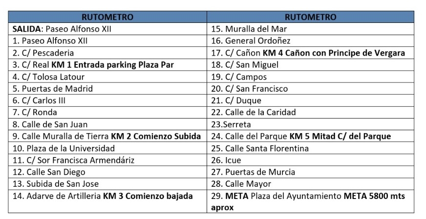 IMPORTANTE: La parte de la Muralla del Mar se realizará por la ACERA que esta a la izquierda en el sentido de la carrera, para una mayor seguridad de los corredores.