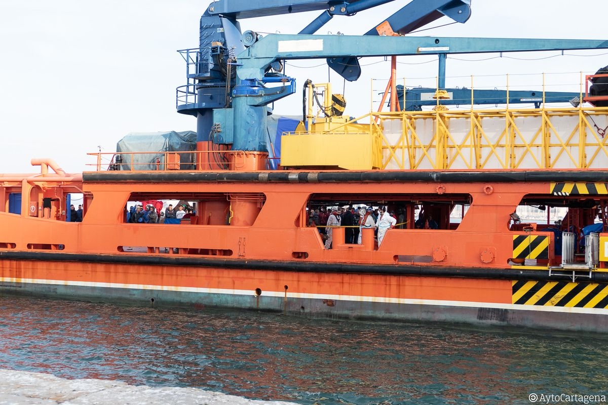 A su llegada, los equipos de rescate procedieron al trasbordo de los dos supervivientes y de los tres cuerpos sin vida, que fueron trasladados al Puerto de Santa Lucía de Cartagena.