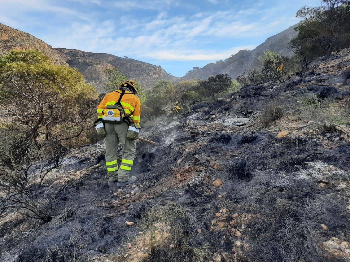 En el momento de mayor intensidad, el operativo estuvo compuesto por 25 efectivos forestales y técnicos de la Dirección General de Patrimonio Natural y Acción Climática, 14 bomberos y cuatro mandos del Servicio de Extinción de Incendios de Cartagena, 22 agentes de Policía Local, 10 guardias civiles y personal de Protección Civil.