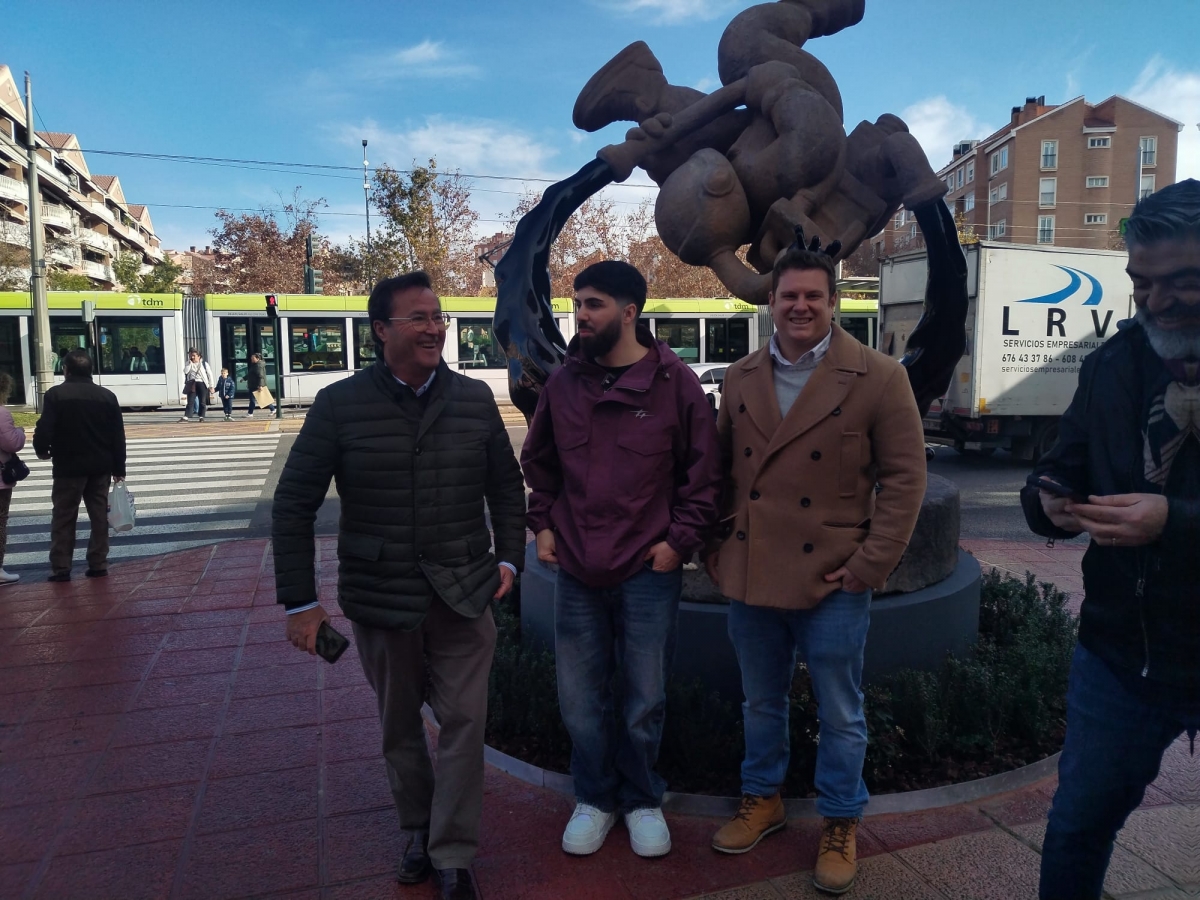 La inauguración de la escultura no se pudo llevar a cabo como estaba previsto -con la presencia del presidente de la Comunidad, Fernando López Miras, y las autoridades de la ciudad- debido al trágico accidente ferroviario acontecido en Córdoba. No obstante, el artista palmareño se acercó a supervisar la obra, ya que este martes viaja a Los Ángeles, donde pasa gran parte del año. Sin olvidarse de Murcia, donde cuenta con un espectácular estudio y de un taller en La Alberca para dar forma a su original y genuino mundo.