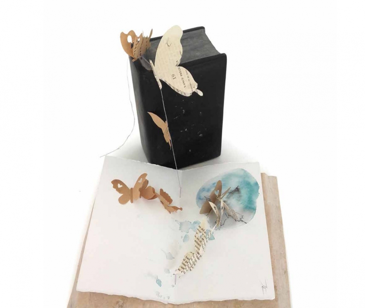El proyecto de Belén Orta nace de una experiencia íntima como es recuperar libros de la biblioteca de su madre fallecida y darles una nueva vida. Cada pieza se erige como un puente entre generaciones, un homenaje a la figura materna y una reflexión sobre la permanencia del recuerdo.