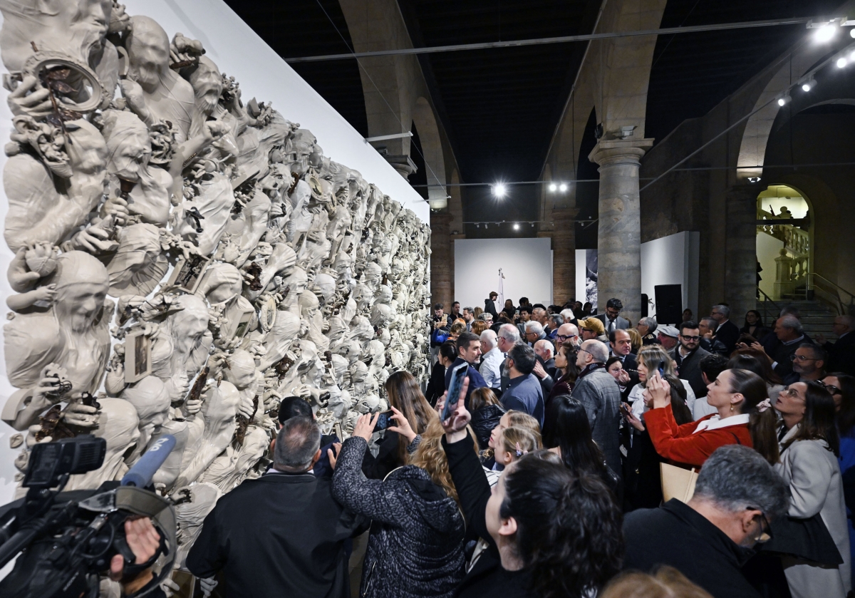 Muchas de estas personas que han dejado su huella en la obra asistieron la presentación de Piel y Memoria que tuvo lugar este jueves en el Almudí, donde se podrá contemplar hasta el 25 de enero. Uno de ellos fue el alcalde de Murcia, José Ballesta, que estuvo junto al artista durante un acto en el que también se pudo conocer la canción creada por Adrián Gutiérrez, vocalista de Nunatak, por el aniversario de Murcia. "Esta obra no es del Ayuntamiento, ni del artista; es de todos los murcianos", aseguró Ballesta. Y, aunque no se anunció oficialmente, todo parece indicar que su destino final será el Centro de Arte Contemporáneo de La Cárcel Vieja de Murcia.