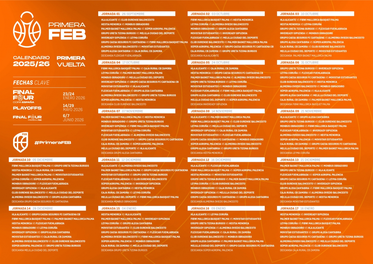 CARTAGENA. El Grupo Caesa Seguros FC Cartagena Club Baloncesto abrirá su segunda temporada en la Primera FEB jugando en casa ante el Fibwi Mallorca Bàsquet Palma el último fin de semana de septiembre.