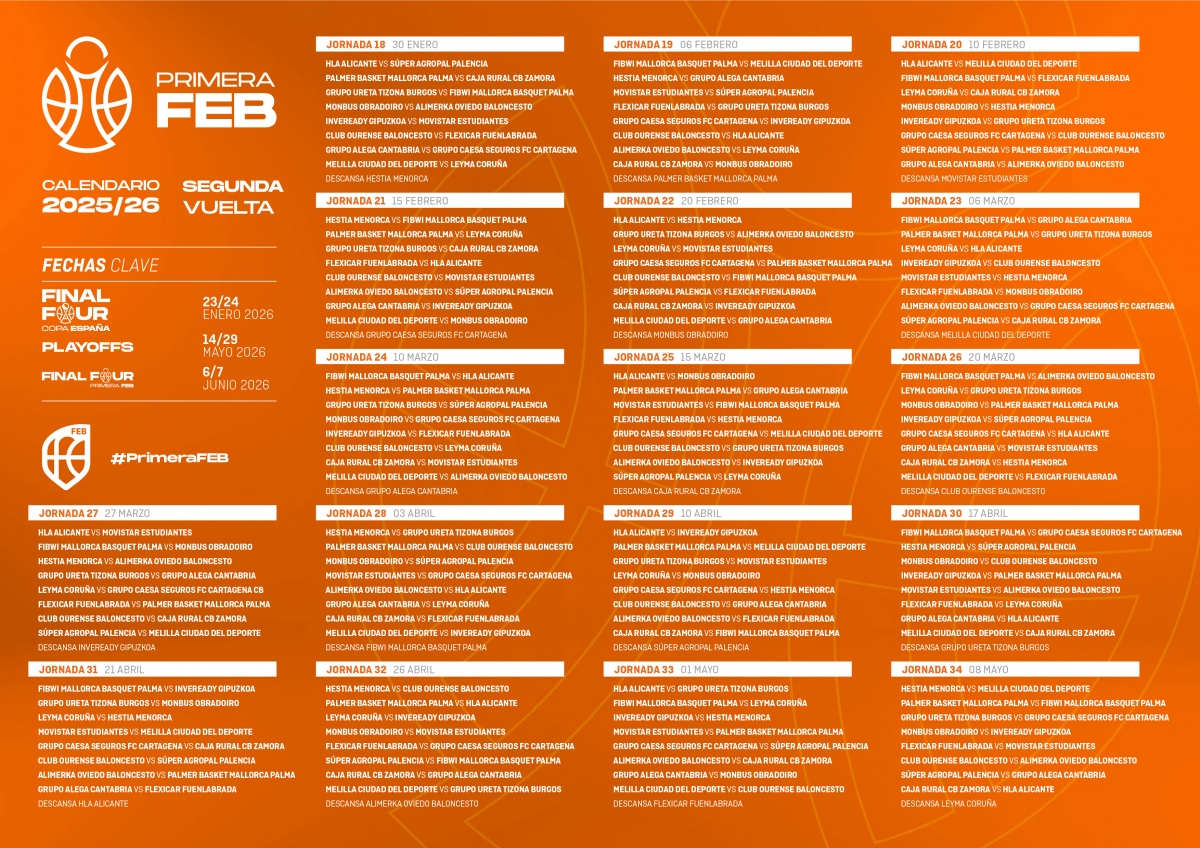 Las eliminatorias por el ascenso del 14 al 29 de mayo y la Final a Cuatro los días 6 y 7 de junio. El pasado curso los blanquinegros estuvieron en unos cuartos de final en los que forzaron el quinto partido ante el Real Betis Baloncesto, en el que cayeron derrotados.