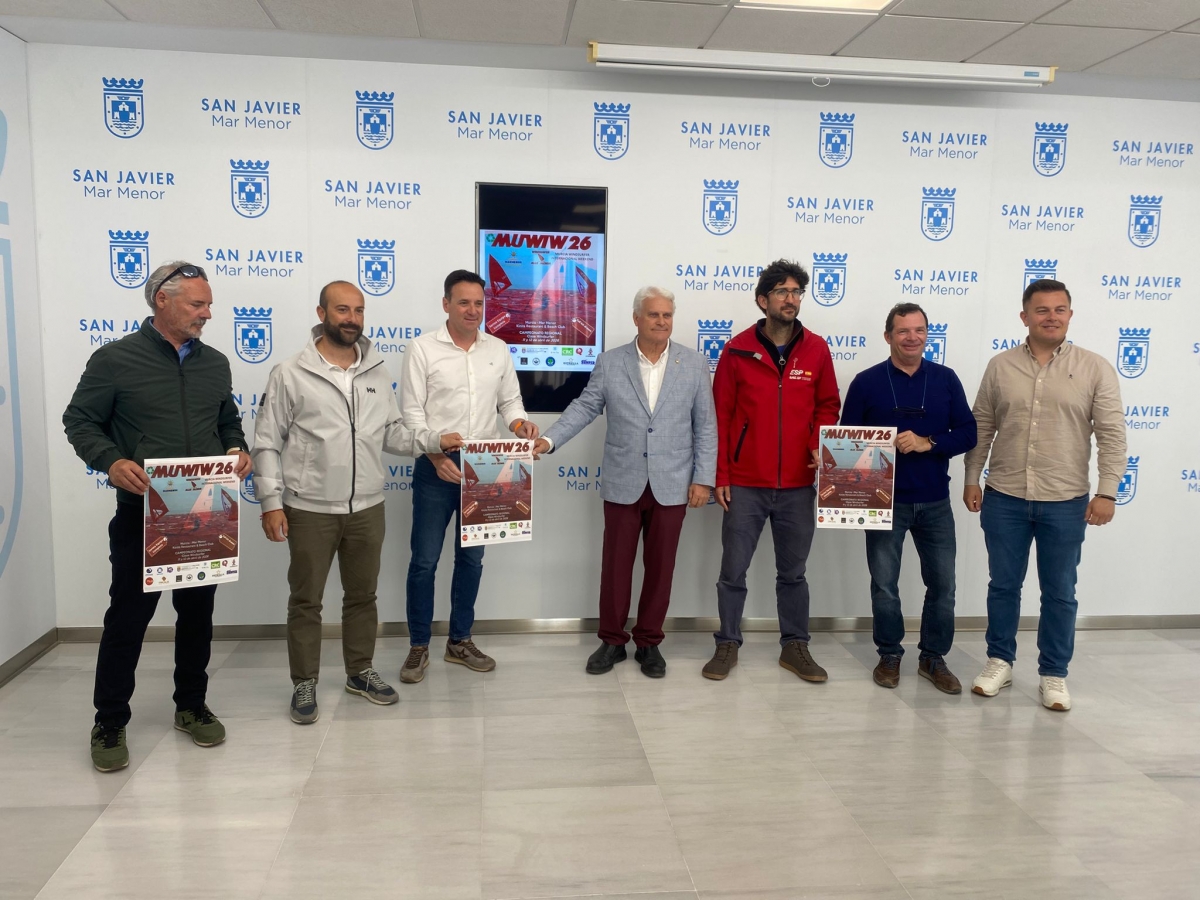 Incluye acto de presentación en el ayuntamiento de san Javier el concejal de deportes Sergio Martinez, el presidente de la federación de vela Arturo garcia , presidente de la Estación Náutica Mar Menor, el secretario territorial de la clase windsurfer el vice presidente Del club windsurfer Mar Menor y el Ceo del Camping Mar menor Joaquin inglés