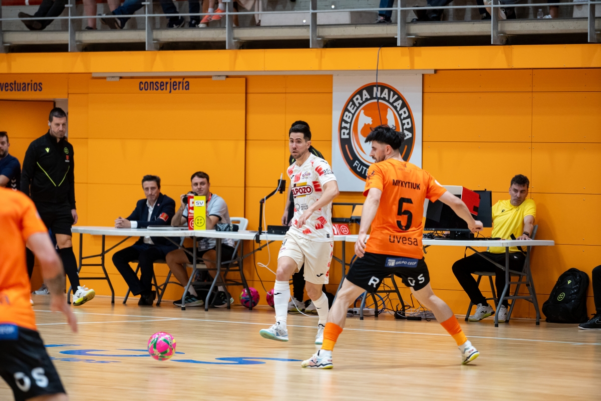 Mikitiuk adelantó a los navarros nada más empezar el choque y, aunque Dener Rodrigo lo igualó en el minuto 9, dos tantos seguidos, que hicieron Fabinho Rocha y Pablo Otero, determinaron un resultado feo para los de la capital del Segura al término de la primera parte. En la reanudación se volcaron los granas, hoy de blanco, y su ataque derivó en un carrusel de ocasiones. Dos de ellas sirvieron para empatar pero el resultado supo a poco porque, además, supone dejarse el primer puesto en la cancha del último de la fila.