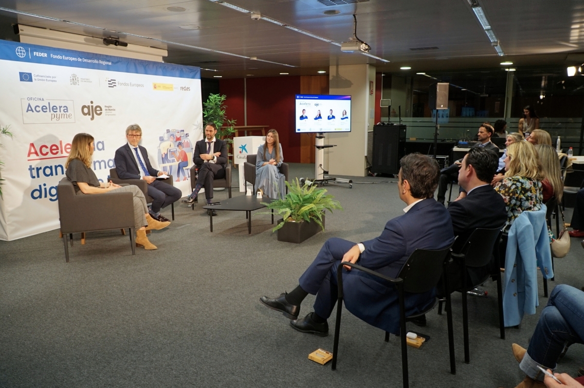 MURCIA. AJE Región de Murcia ha presentado este jueves la nueva Oficina Acelera Pyme, un servicio destinado a impulsar la transformación digital de las pequeñas y medianas empresas, autónomos y personas emprendedoras de la Región de Murcia.