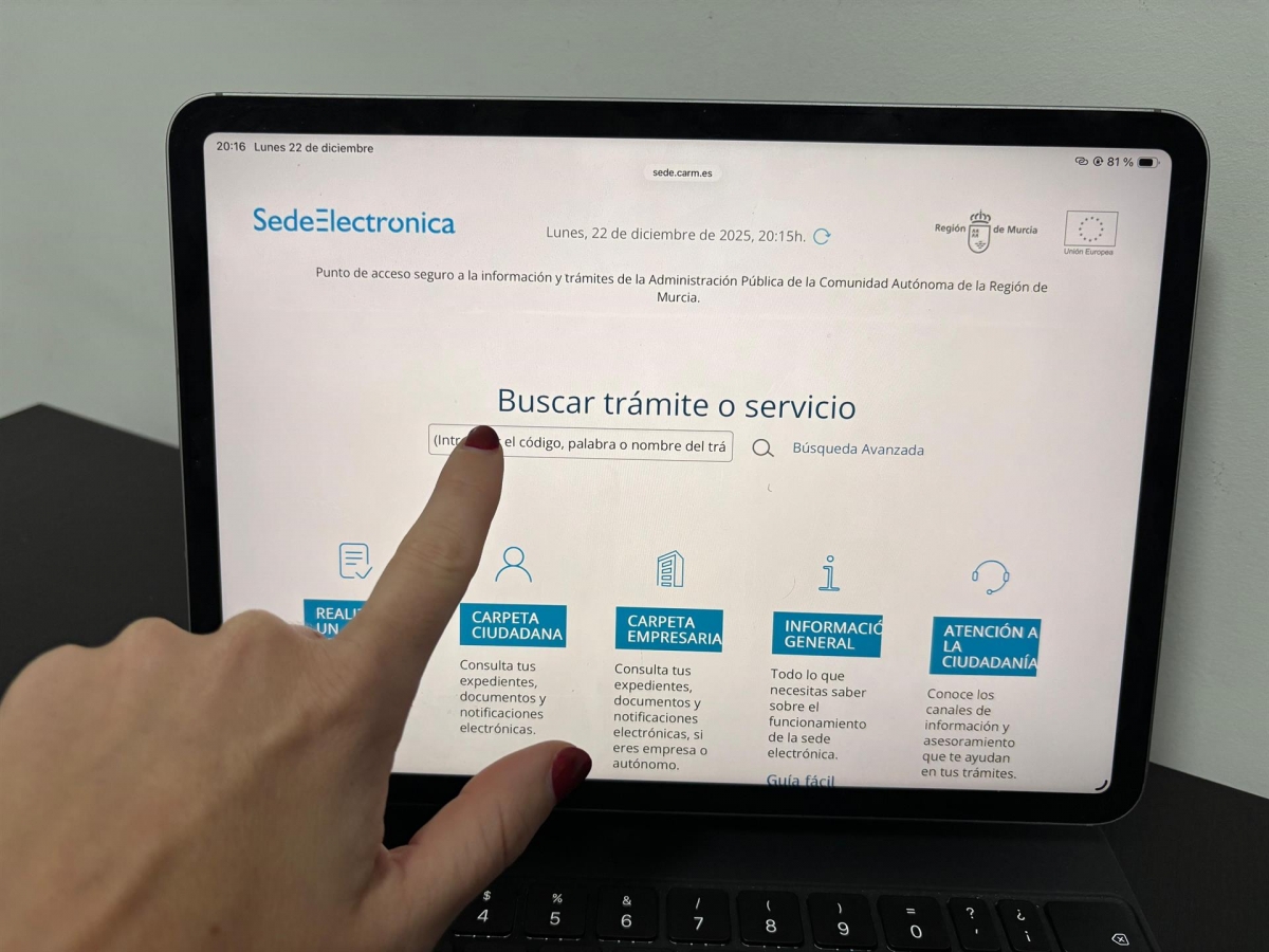 MURCIA (EP).Siete de cada diez expedientes o solicitudes que presentan los ciudadanos ante la Administración pública regional se hacen ya de manera telemática a través de la sede electrónica de la Comunidad, según informaron fuentes del Ejecutivo murciano en un comunicado.
