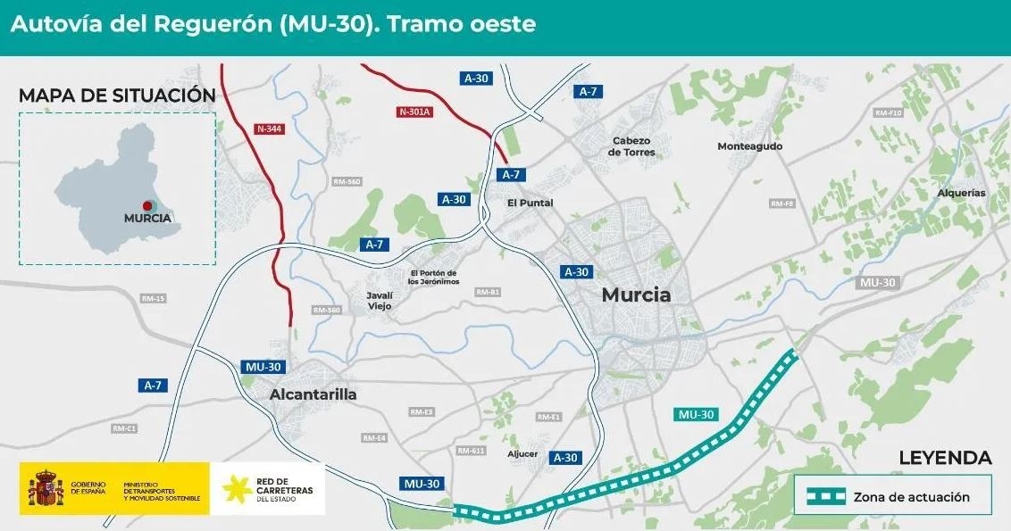 - Tramo este de la circunvalación de Murcia, la MU-30, conocida como autovía del Reguerón. -