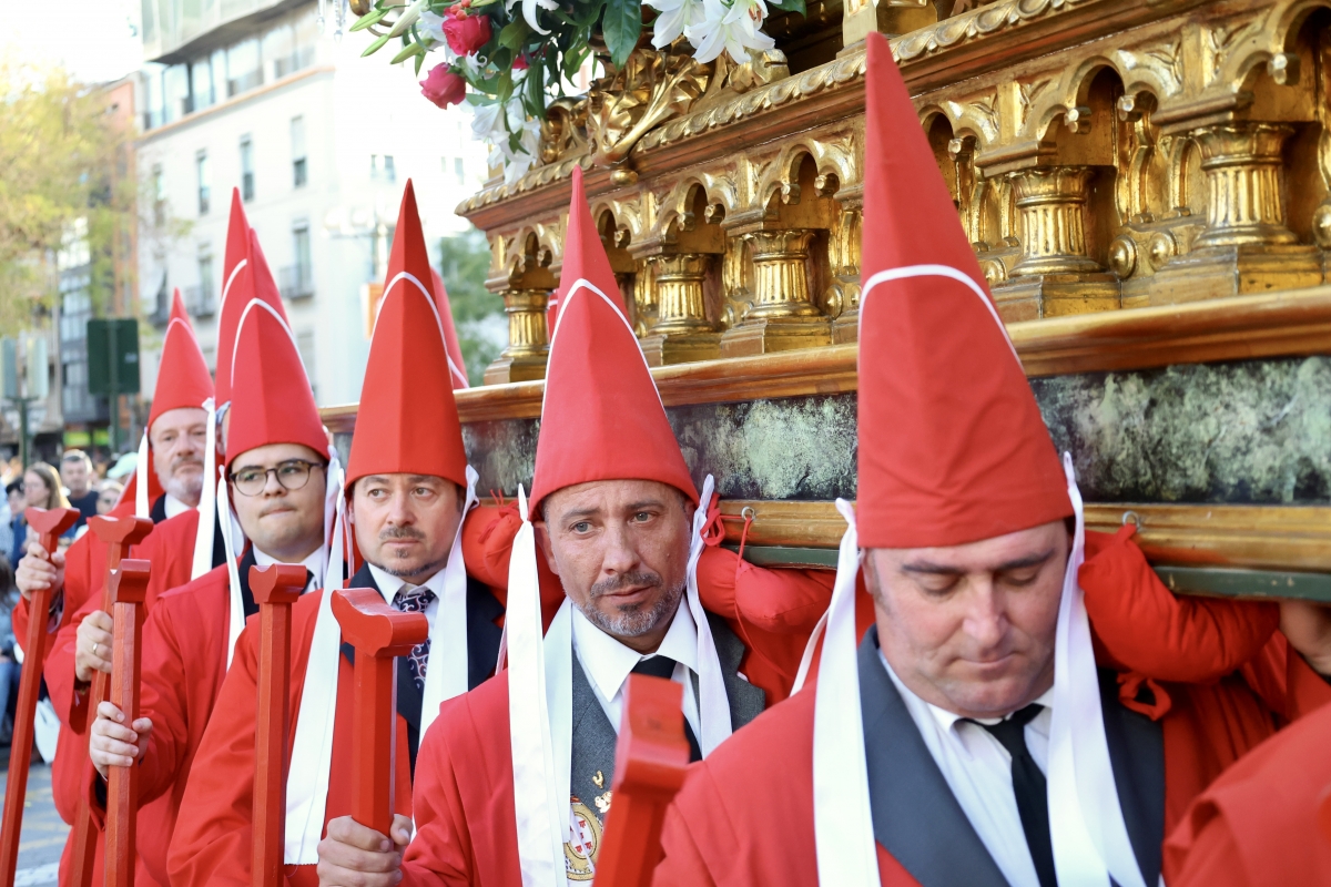 MURCIA. Miles de murcianos y visitantes vibraron con el miércoles santo más colorao de todos, el miércoles santo murciano donde la sangre cruza el río. Un año más, la Archicofradía de la Preciosísima Sangre de Nuestro Señor Jesucristo y su docena de pasos volvió a emocionar por las calles de Murcia con el cortejo procesional más numeroso de la Semana Santa de Murcia, declarada de Interés Turístico Internacional.