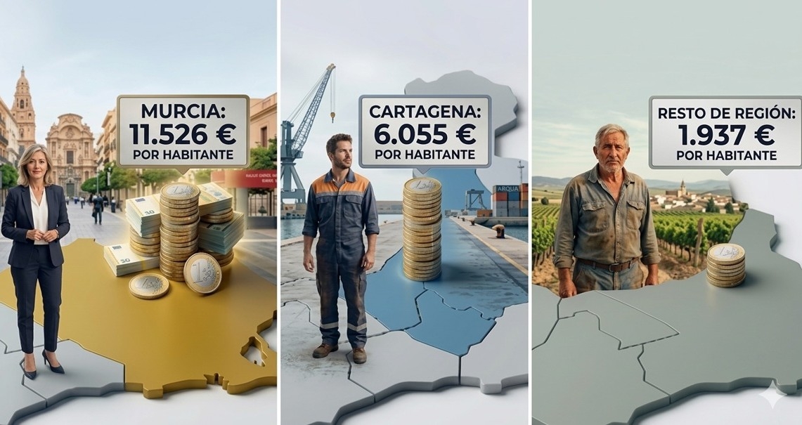 Mientras tanto, otras zonas como Cartagena o Lorca asisten como invitados secundarios a este banquete presupuestario, viendo como parte de la renta vinculada a su actividad termina desplazándose hacia la capital.
