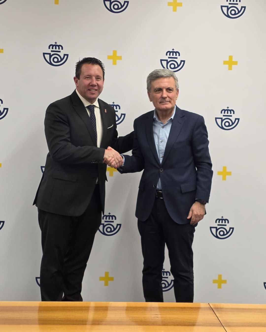 El alcalde de Mula firmó ayer en Madrid, junto al presidente de Correos, Pedro Saura, en la sede de esta entidad ubicada en el Edificio Clara Campoamor, la escritura de compraventa de la Casa de Correos, inmueble situado en la Plaza del Ayuntamiento, que pasa a ser propiedad municipal con el objetivo de destinarlo a servicios municipales.