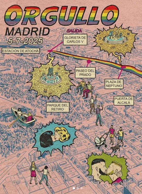 "¿Dónde empieza la marcha? Si vas al Orgullo, ¡llévate este mapa en el corazón (o en el móvil)! Y si no, bueno… al menos sabrás por dónde se mueve la alegría este finde. Puedes encontrar la revista impresa en bibliotecas y centros culturales de Madrid", ha añadido este ilustrador, que se caracteriza por su estilo restro y que colabora desde Murcia con destacadas publicaciones nacionales e internacionales.