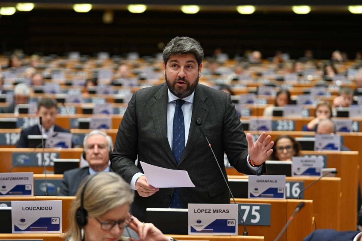 Ante el Pleno, López Miras trasladó la experiencia de la Región de Murcia en gestión eficiente del agua y defendió la necesidad de reforzar el papel de las regiones en las políticas europeas relacionadas con este recurso.