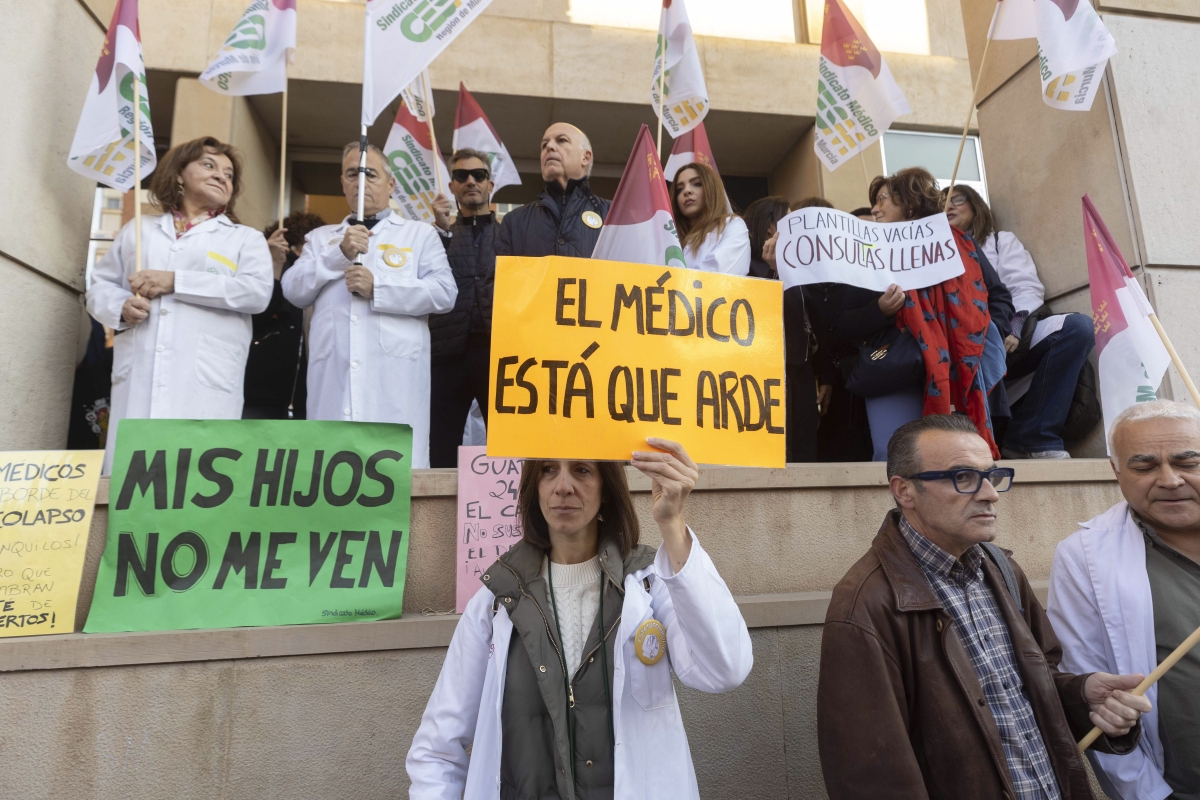 A las 9.00 horas, los profesionales han escenificado la protesta con una concentración a puertas de la Consejería de Salud, secundada por cerca de 250 médicos, según sus datos, y que ha acabado cortando el tráfico de Ronda de Levante. Estas concentraciones se repetirán durante todas las jornadas de huelga e incluirá, además, una protesta el día 11 de diciembre, a las 11.00 horas, frente a la Delegación del Gobierno en Murcia.