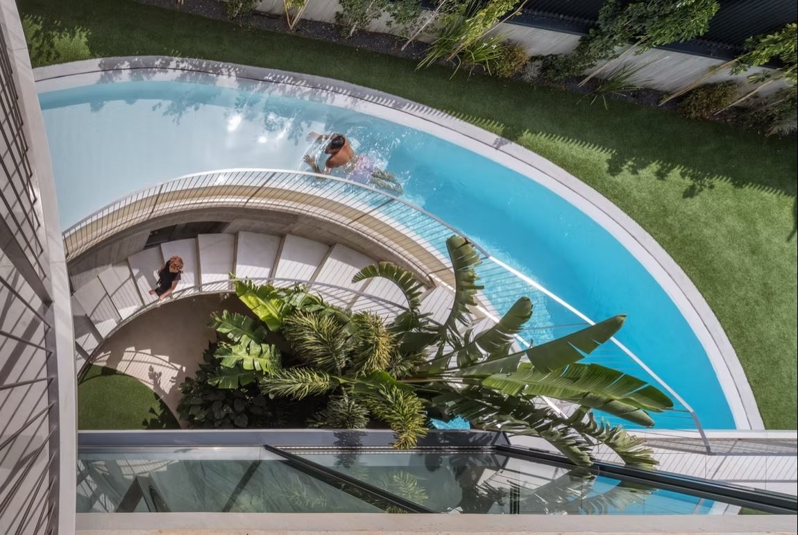 "Una pareja quería un hogar que fuera 'especial' y 'diferente'. Su moderna casa en el sureste de España cumple con ambos requisitos", dijo a modo de introducción este diario de carácter internacional y con sede en Nueva York, que informó de todos los detalles de este proyecto que, desde luego, se sale de lo normal. Porque, como indica su nombre, esta vivienda gira sobre sí misma y parece desafíar todos los límites para aprovechar el espacio complicado de una parcela y ofrecer diferentes itinerarios visuales, incluido el recorrido de la piscina, que convierten el hecho de habitarla en toda una experiencia sensorial y cambiante.