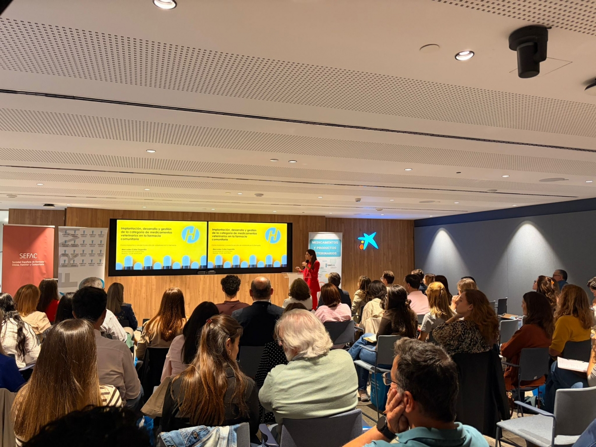 MURCIA. La especialista en veterinaria de Hefame, Mercedes Collar, explicó la consolidación de la farmacia como canal sanitario de referencia para los medicamentos veterinarios y los factores que están impulsando el crecimiento sostenido de esta categoría, en el marco de la Jornada sobre Dispensación y Venta de Medicamentos y Productos Veterinarios en Farmacia Comunitaria, organizada por el Colegio Oficial de Farmacéuticos de Murcia y por la Sociedad Española de Farmacia Clínica, Familiar y Comunitaria.